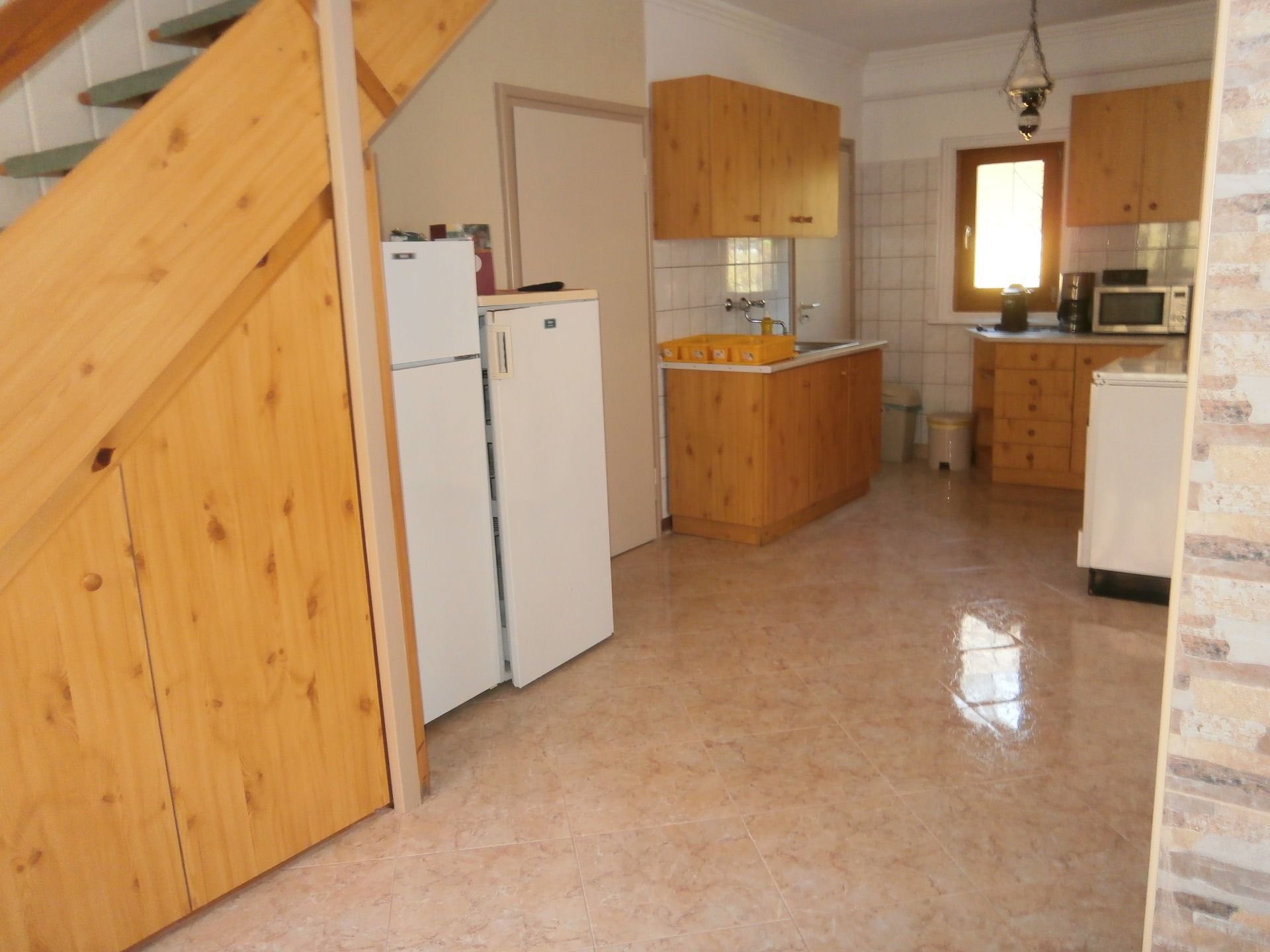 - 1 amerikai konyha, hűtő fagyasztó résszel (2 db), 1 gáztűzhely, 1 mikró hullámú sütő, kávé- és teafőző